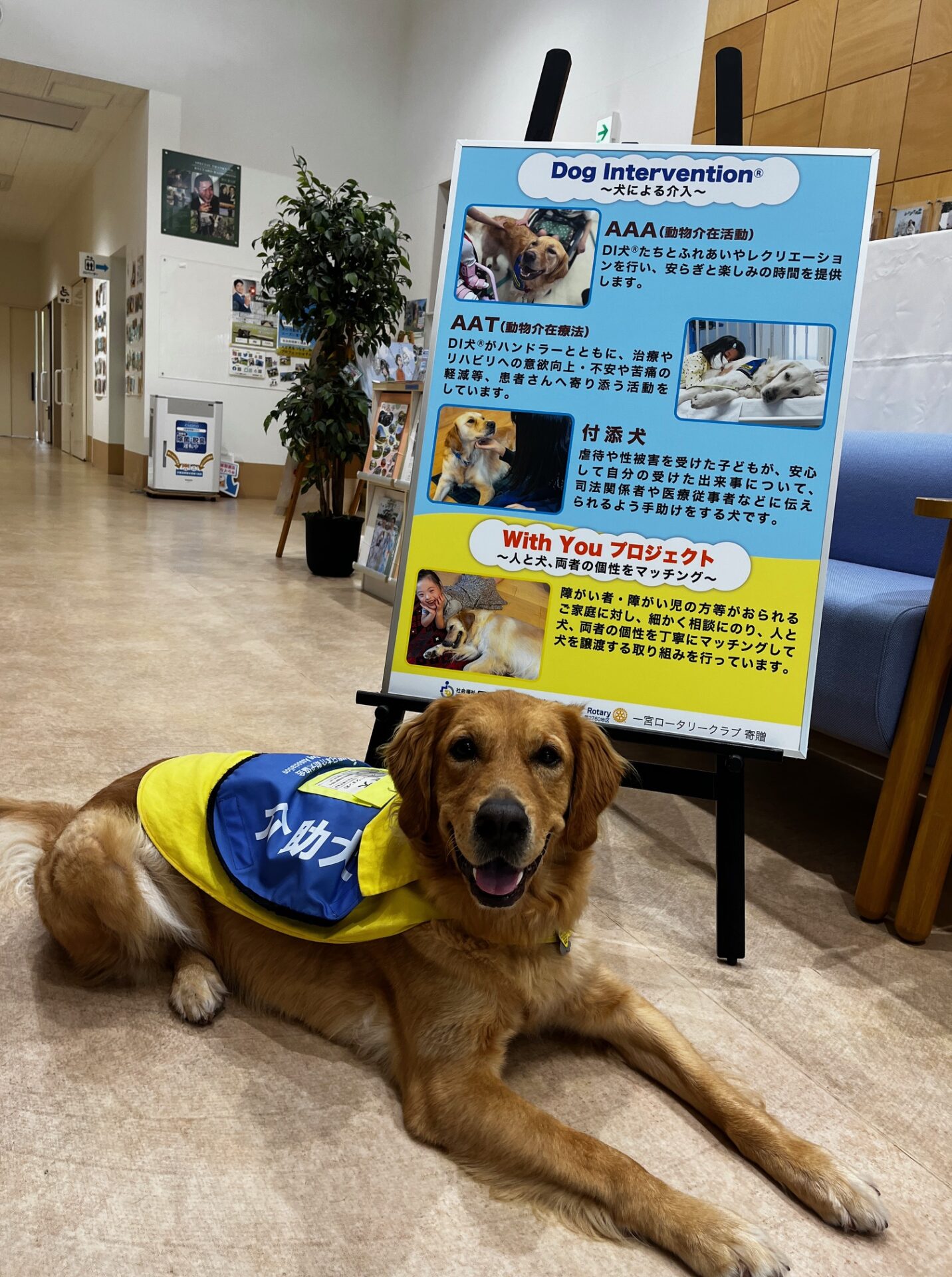 一宮ロータリークラブ様のご支援により、愛知県一宮市で開催されている『びさいまつり』で介助犬の啓発活動と募金を実施しました。
