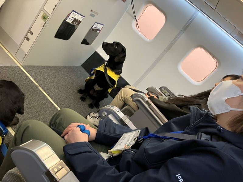 株式会社フジドリームエアラインズ様のご依頼のもと、介助犬使用者が搭乗している場合を想定し、緊急時の避難対応についての検証を行いました。